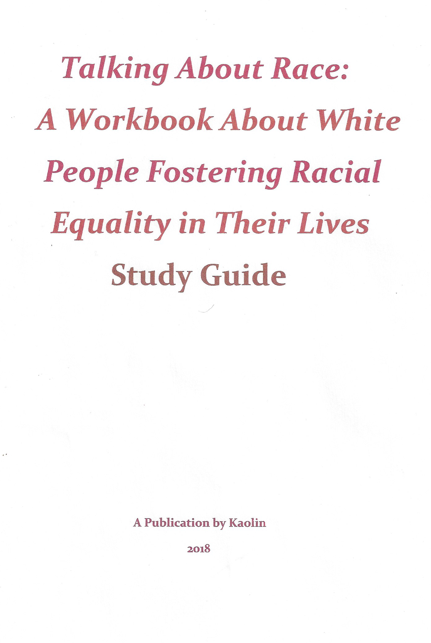 TALKING ABOUT RACE: A WORKBOOK